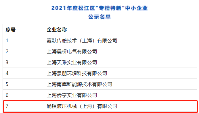 《松江區(qū)“專(zhuān)精特新”中小企業(yè)發(fā)展專(zhuān)項(xiàng)支持實(shí)施細(xì)則(2020年版)》(滬松經(jīng)〔2020〕165號(hào)),區(qū)經(jīng)委組織開(kāi)展了2021年度松江區(qū)“專(zhuān)精特新”中小企業(yè)申報(bào)和復(fù)核工作。涌鎮(zhèn)液壓充分發(fā)揮自身優(yōu)勢(shì),堅(jiān)持獨(dú)立自主的研發(fā)與創(chuàng)新設(shè)計(jì),憑借高效的產(chǎn)品創(chuàng)新能力和廣泛的市場(chǎng)認(rèn)可度,成功申報(bào)并獲得上海市松江區(qū)“專(zhuān)精特新”的稱(chēng)號(hào)。